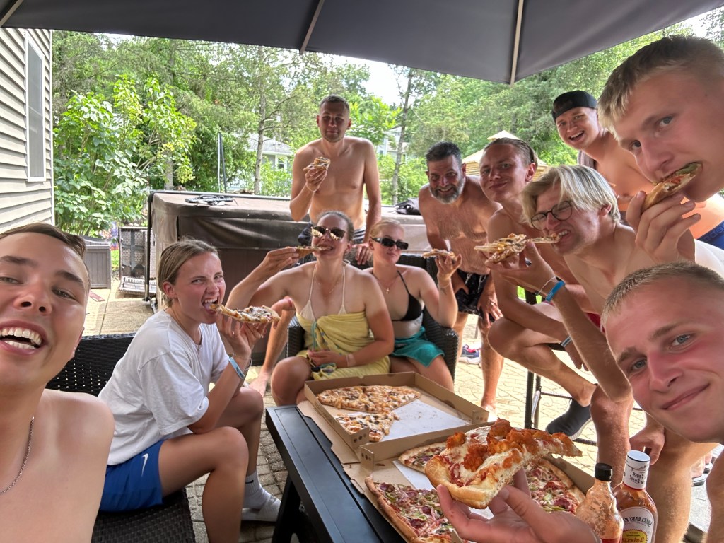 Viies nĂ€dal on lĂ”pule jĂ”udmas ja kĂ€es on pĂŒhapĂ€ev. Möödunud nĂ€dalal tĂ€histasime koos ameeriklastega 4. juulit, USA iseseisvuspĂ€eva. Sel pĂ€eval kandsime kĂ”ik lipuvĂ€rvides riideid ja lipud lehvisid iga maja kĂŒljes.