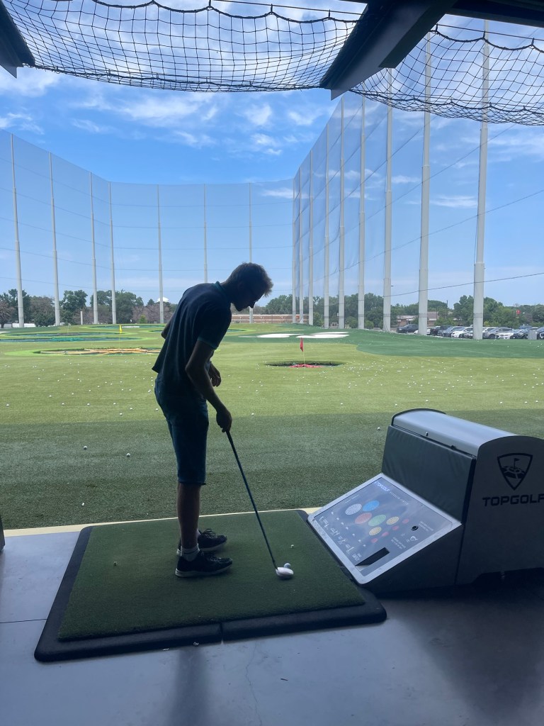 Today we played golf at a cool place called TOPGOLF in Minneapolis. It was really cool, but it was a little hard to hit the ball. 😅