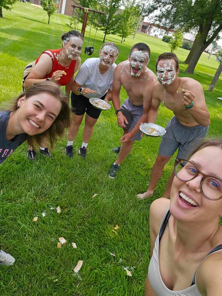 See nädal oli kõigi jaoks väga põnev kuna toimus “Pie in the eye” (pirukaga näkku) võistlus. Kaotajad said kreemiseks ja mõnusa vahukoore lõhna endale mitmeks päevaks. 🙂