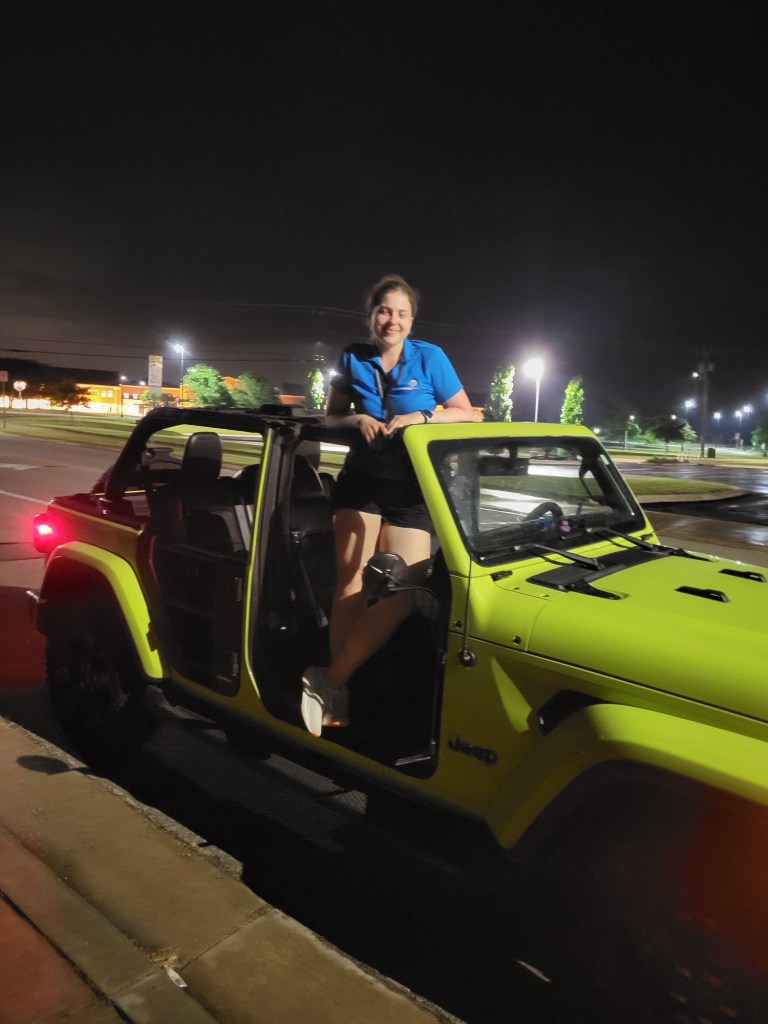 🚙 Elise – Cruising in style! She scored a sweet ride in a roofless jeep, wind in her hair, sun on her face, and vibes on point. The kind of ride that makes you feel like the main character in a movie!