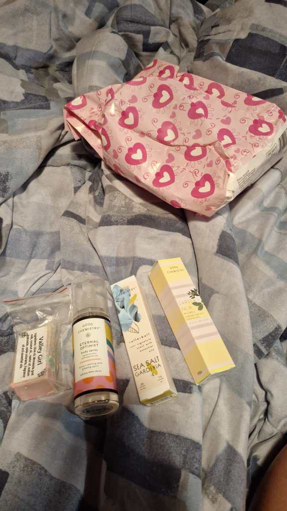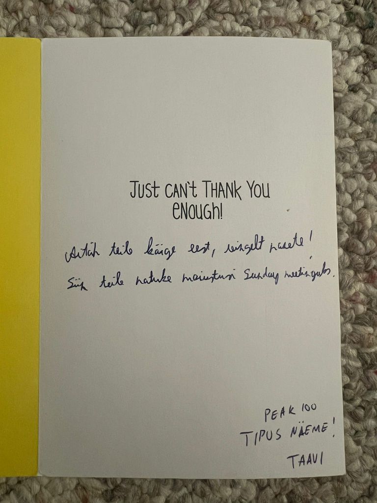 Samuti sain ĂŒhe vanaema kĂ€est ka vĂ€ikese kingituse, kus sees olid Ă€sja ostetud seebid ja nĂ€ohooldusvahendid. Ma ĂŒtlesin talle ainult “tere!” ja selgitasin, mida ma teen ja ta ĂŒtles, et ma olin nii tore ja sĂ”bralik seega ta tegi mulle kingituse.