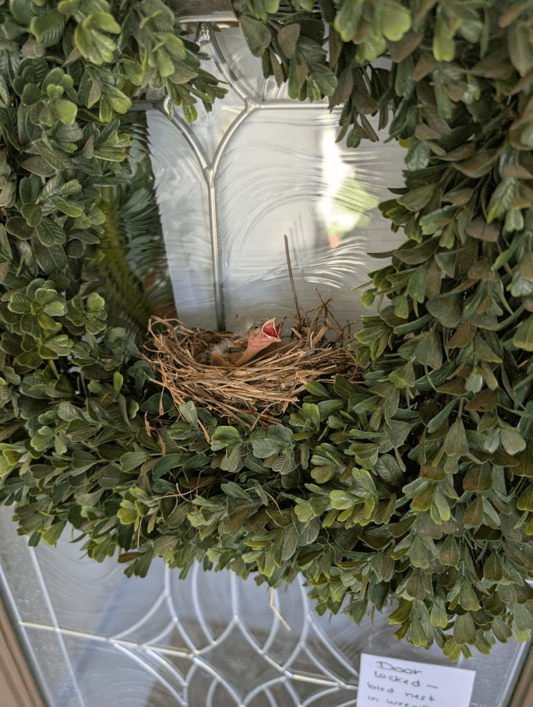 Linnu pesa ühe maja uksel
