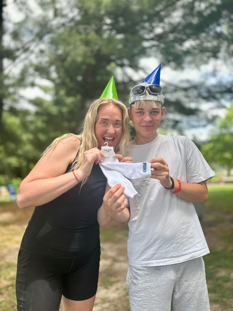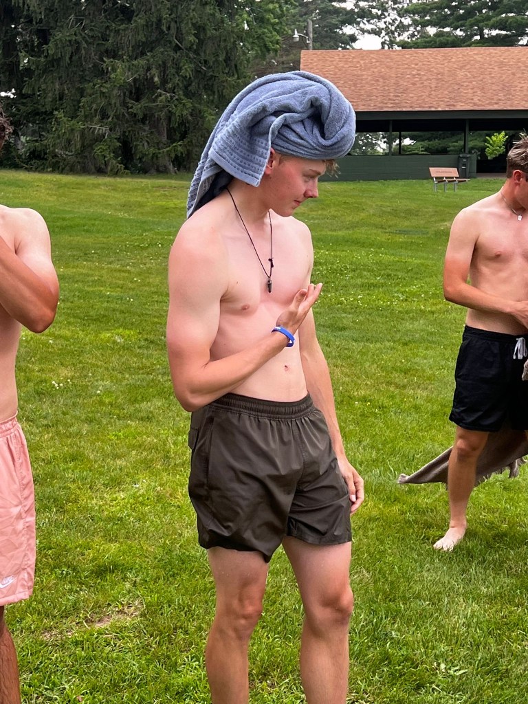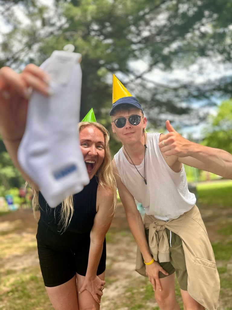 Milliseid muljeid pühapäevast?- Pühapäevased muljed on mega positiivsed. Saime ujuda ja päikest võtta. Tähistasime oma juhi Jaanika sünnipäeva, süües kooki ja tehes lahedaid mänge. Sel nädalal võitsime haisuvabasid sokke, kui olime 60 inimesega maha istunud nädala jooksul. See oli tore.