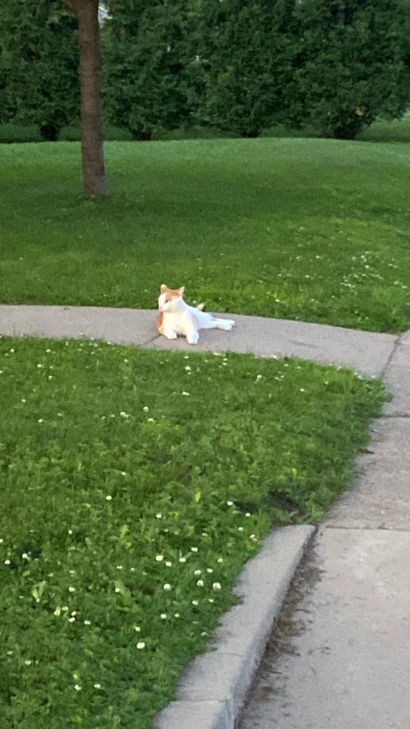 Mis huvitavat leidsid/nägid töötades? – leidsin endale sõbra Joyce’i, keda ma nädala jooksul kohtasin turfis 4x, ta on ex ukselt-uksele müüginaine ja ta andis mulle isegi nõu, kuidas veel osavam olla. (pildil on ta kass, kellest ta kaskis pilti teha)