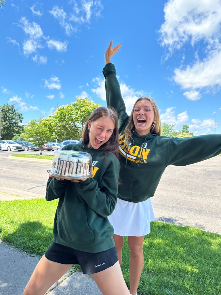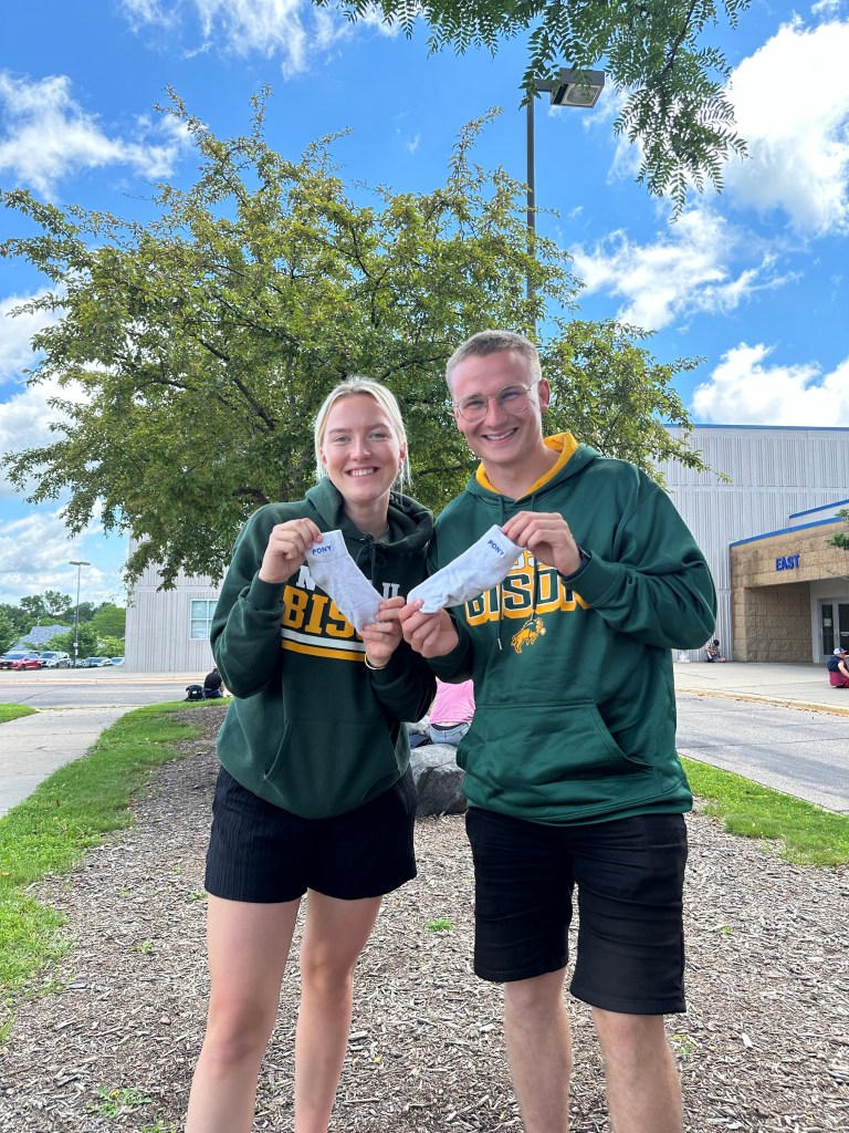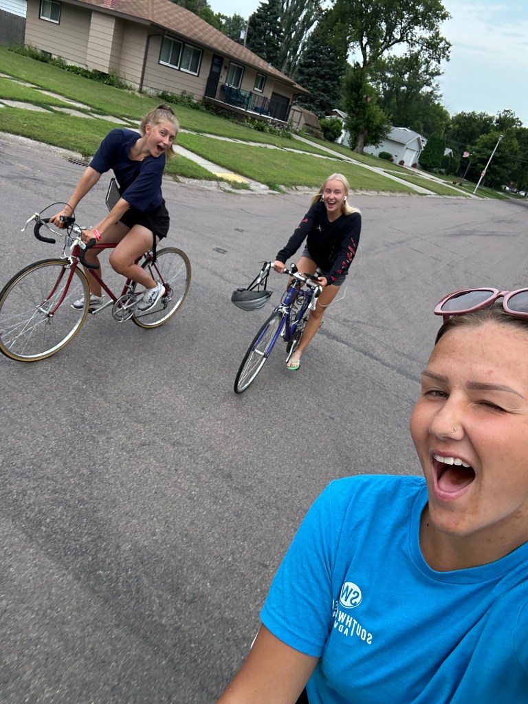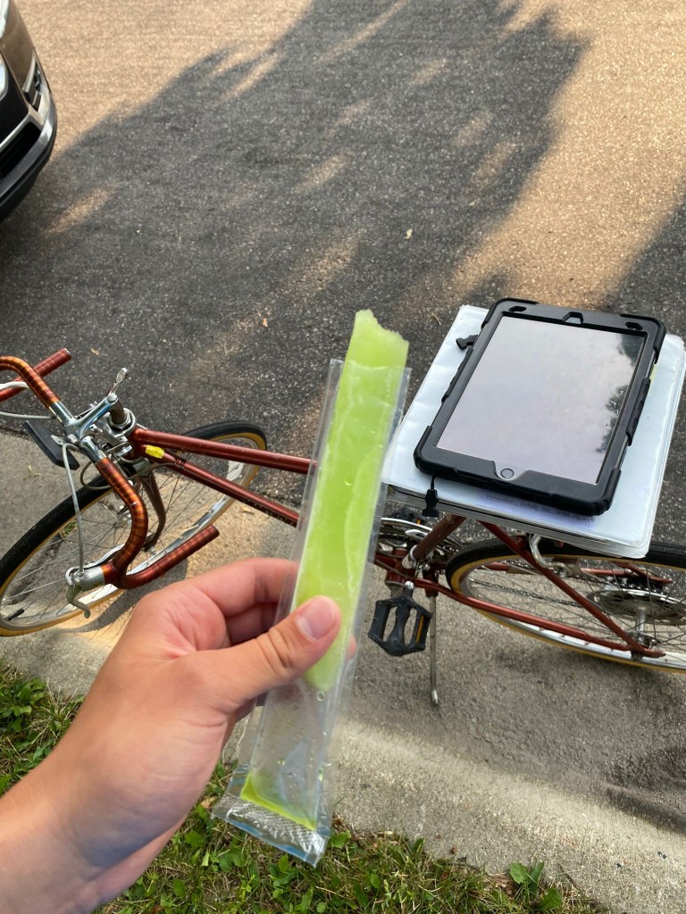 Kristelle: Kohtasin kirjanikku Jim Puppe, kes siis oma raamatu “Dakota Attitude” mulle andis (2021 ND bestseller?) ja pühenduse sisse kirjutas. Pani veel isetehtud salsa ja vorsti ka kaasa. Tagasi ratta juurde minnes avastasin korvist kausikese smuuti-šokolaadi-banaani-müsli seguga, mille üks emps sinna toonud oli!