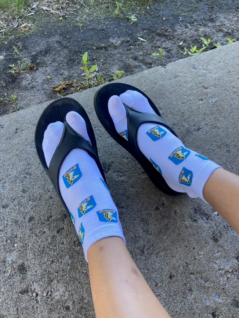 Saime ka KÕIK endale ponisokid!! Need kõige pehmemad-soojemad-lillelõhnalised käsitööreliikviad, mis ainult suurima edu toovad. Nimelt kasvasime igaüks nädala jooksul enda numbrites! Linnukesed siristasid, et selliseid seltskondi on vähe, kes kõik endale sokid jalga saavad tõmmata!