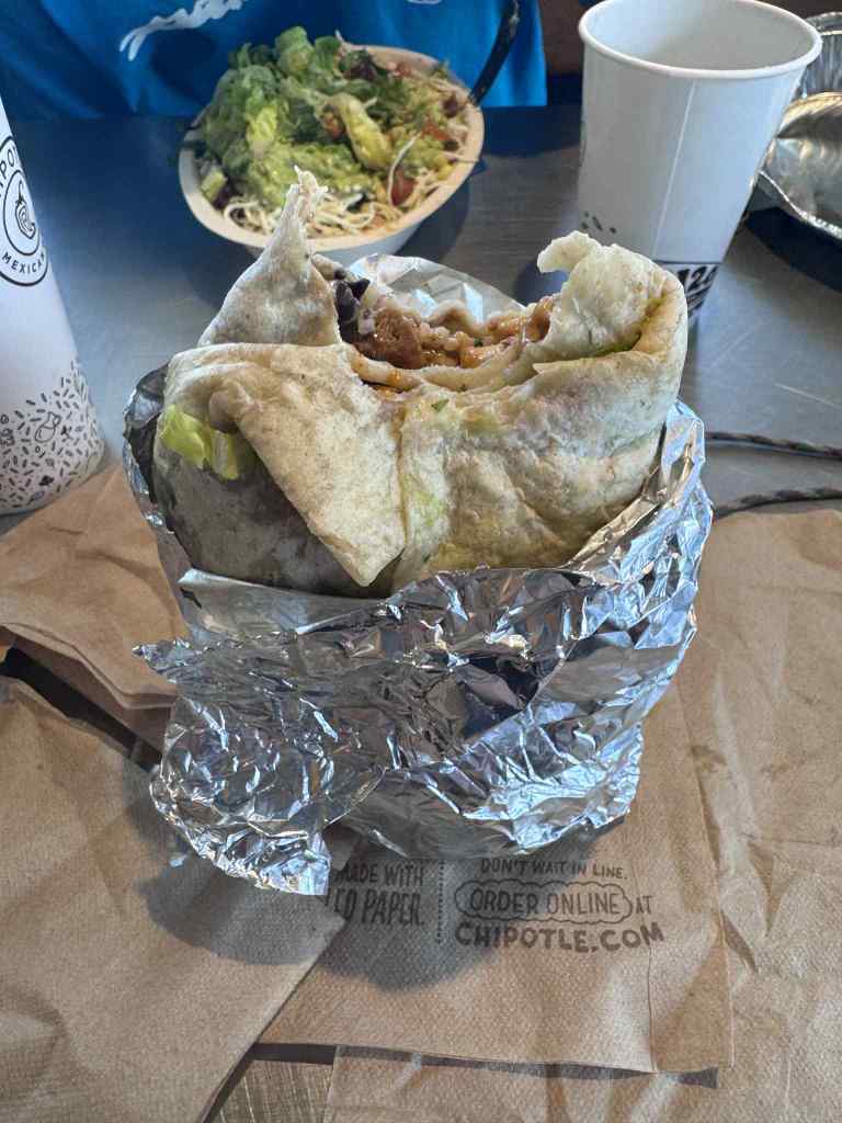 Ja siis tulid wrapid. Kuna päev oli tihe ja väljas söömine tundus ajaraisk, keerasime hotellitoas lahti ühe suure paberist kotitäie koostisosi ja hakkasime käigu pealt vorpima. Kana, hummus, tomat, lehtsalat – kiired liigutused, natuke naeru, palju möla. Üks pakkis, teine keeras rulli, kolmas juba nosis. See oli justkui väike kaootiline köögishow müügitiimi moodi – aga meil oli vaja kütust, ja see tuli omal jõul.