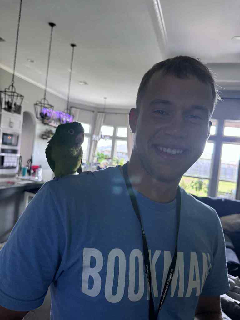 Day 1, week 1 just getting started, aga ega mul suuremat stoooryt tegelikult ei olegi. See oli üldse kuidagi veider nädal ma ütleks (üks veidramaid). Tavaline töönädal kus keskendusin iseendale ja sellele mida eelkõige mina saan kontrollida. Selle nädala üks eredamaid hetki oli võib-olla kus sain pilti teha järjekordse loomaga. Kõige pealt ühel kliendil oli roheline papagoi, kes pidavat hammustama igat inimest v.a omanikku – ma tundsin ennast suht enesekindlalt, et ta ei näksa mind kõrvast ja küsisin linnuga pilti. Lõpptulemusena sain pildi kus poseerisime linnuga mõlemad. Järjekordne fun kogemus. Lisaks kuna armastan loomadega piltide tegemist, siis sain pilti ka ühe host-family koeraga. Armastasin sunday meetingut, kus tegime väikse poolparty ja saime hüppelaualt saltosi teha. Vahukoor minu näos oli samuti väga maitsev 😆 Lisaks suutsin ühe walmarti ratta täiesti ribadeks sõita. Pool päevast käisin turfis ilma sadulata ringi.