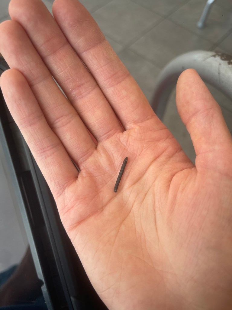 Lisaks pidin teist ja ka kolmandat korda oma rendiautol rehvi parandama minema, sest esmalt parandati vale rehv ära… (esimene kord oli nädal peale auto saamist). Mulle näidati ka naela, mis väidetavalt minu auto rehvist leiti