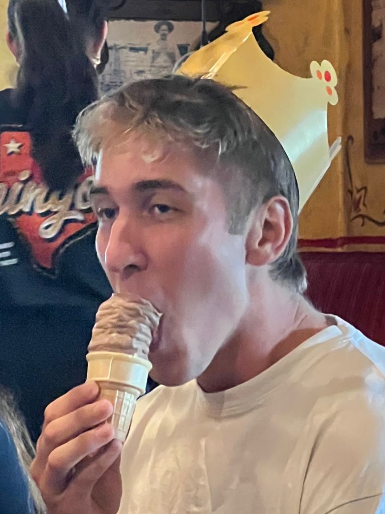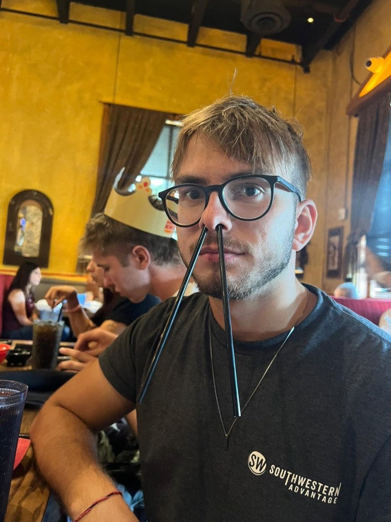 Pärast suundusime Mehhiko restorani, kus saime tasuta nachosid ja jäätist. Kuna nachosid toodi pidevalt juurde ja jäätis tuli lausa eelroaks, olime pearoaks juba täiesti täis. Meil on siin kombeks natuke pulli teha, nii et otsustasime päeva lõpetuseks pidada Rolandi sünnipäeva, isegi kui see tegelikult on tal alles detsembris.