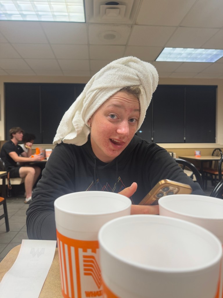 Laupäeva õhtul sõitsime me Texase legendaarsesse Whataburgerisse, et tähistada seda edukat nädalat.